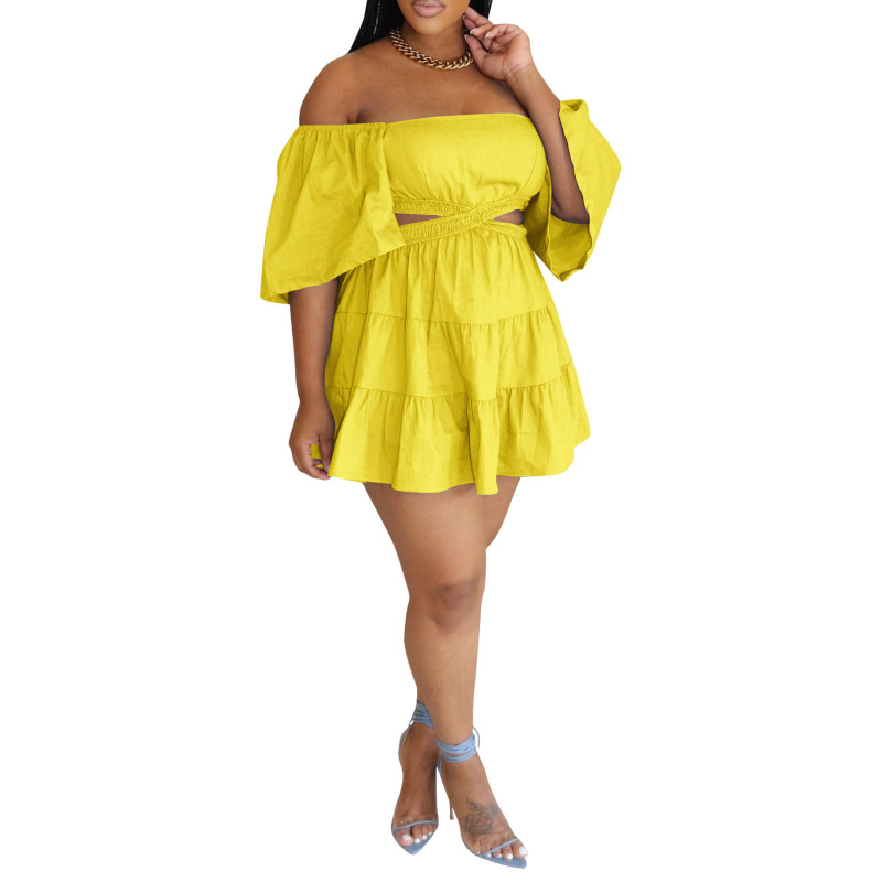Women's Dress Line Neck Pile Skirt Short Sleeve Skirt